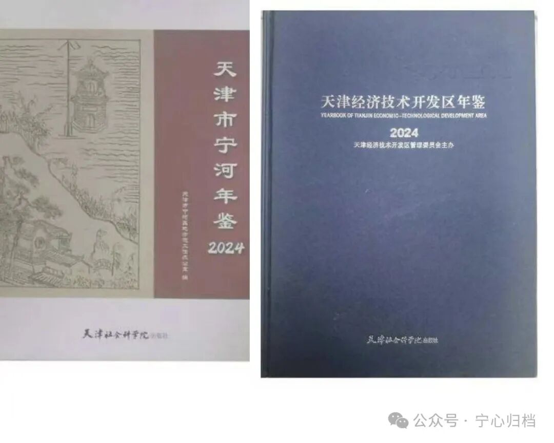 截至目前,宁河区档案馆已收到《天津市志·天津经济技术开发区志(2001—2010)》《天津经济技术开发区年鉴(2020)》《天津经济技术开发区年鉴(2021)》《天津经济技术开发区年鉴(2022)》《天津经济技术开发区年鉴(2023)》《天津经济技术开发区年鉴(2024)》。