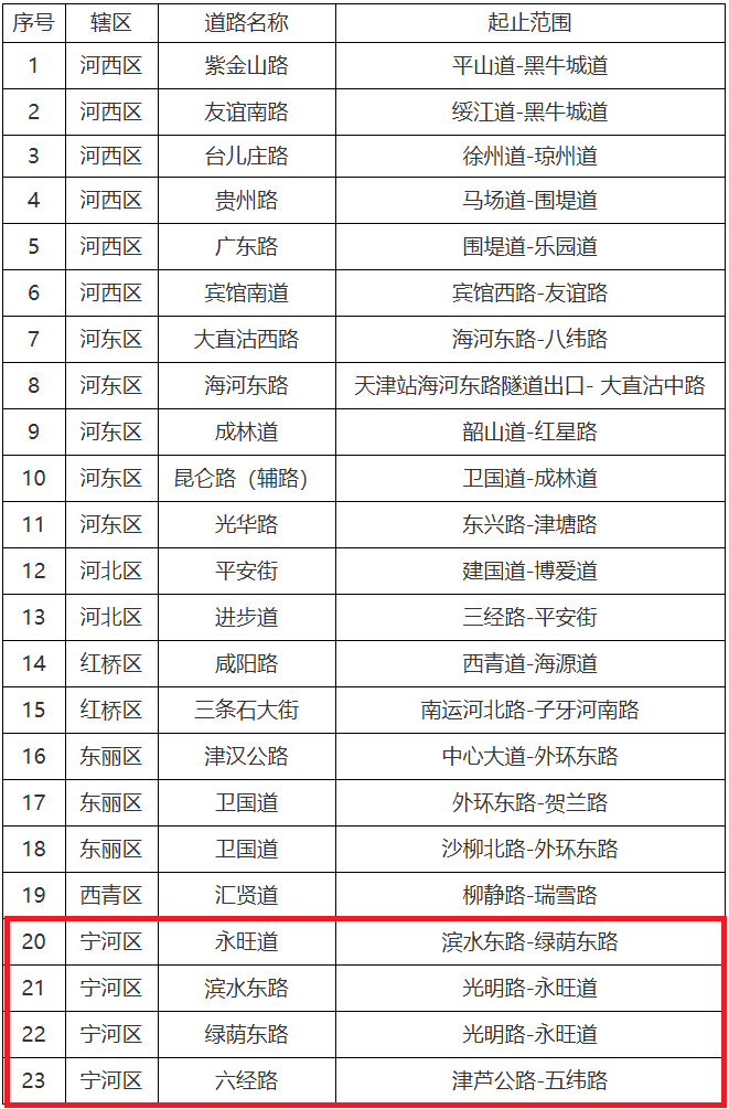 为进一步加强我市道路交通安全管理,规范静态交通秩序,提高道路通行能力,根据《中华人民共和国道路交通安全法》及其实施条例等有关法律法规规定,天津市公安交通管理局根据道路通行实际情况,决定自2025年3月31日起,将下列23条路段设置为机动车违法停车严格管理路段。机动车在严格管理路段内违法停放的,公安交管部门将在提醒纠正的同时依法予以处罚。其中涉及宁河4条路段。