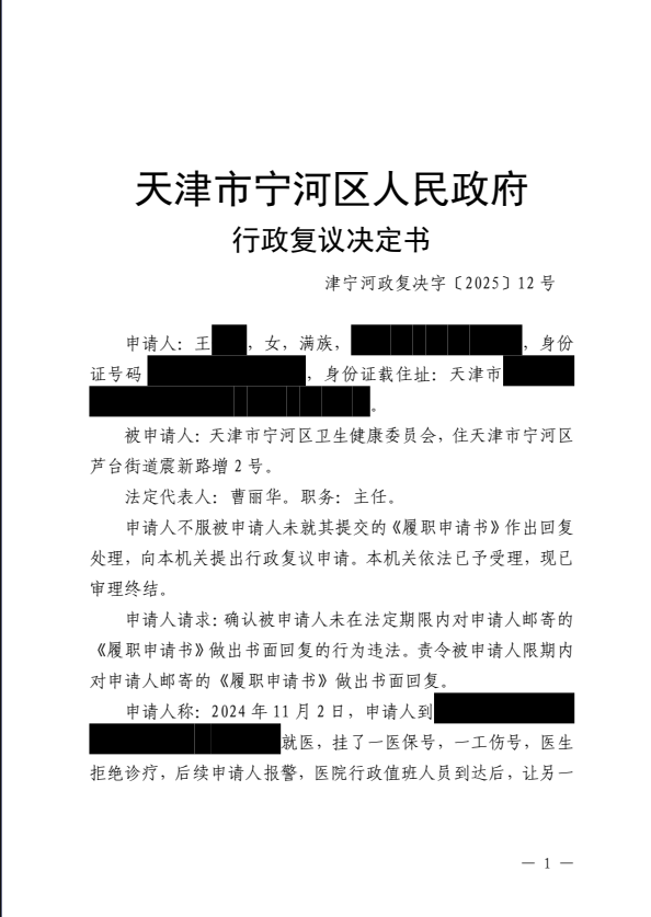 津宁河政复决字〔2025〕12号天津市宁河区人民政府行政复议决定书