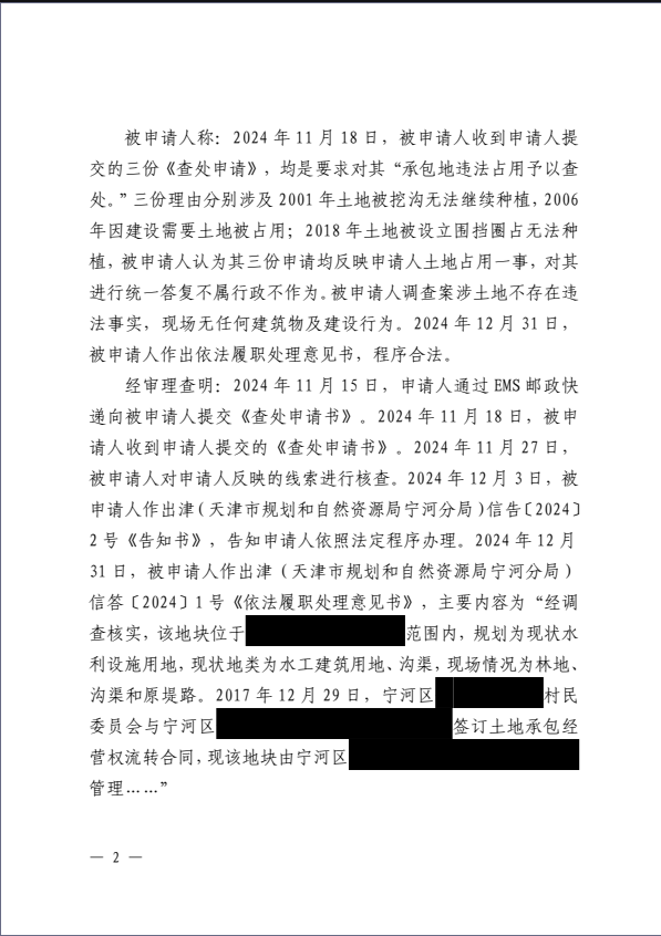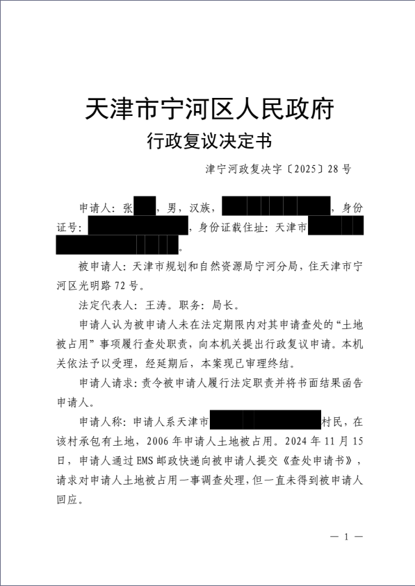 津宁河政复决字〔2025〕28号天津市宁河区人民政府行政复议决定书